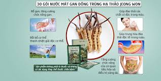 Nước bổ gan đông trùng hạ thảo hàn quốc Jeong Won là sự kết hợp các thành phần bổ gan như nho khô Hovenia, táo đỏ...cùng chiết xuất đông trùng hạ thảo tạo thành sản phẩm tuyệt vời có tác dụng thải độc gan, nâng cao thể lực, sức khỏe cho người cao tuổi, người suy nhược cơ thể hay ốm yếu.